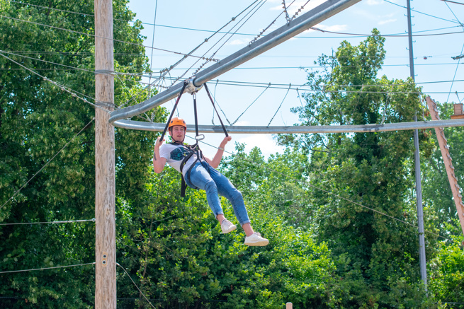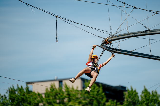 Year-round zip-lining on Adventure City's rollercoaster zipline