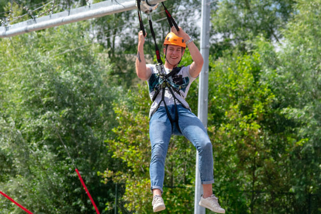 The rollercoaster zipline is 100% safe due to the development of new high technology and the use of strong and reliable material. Many tests were carried out before this new way of zip-lining became possible. All participants are fully secured using the Expoglider. Bumping yourself on certain fixed structures around the zip line is therefore not possible. This makes it a certainty that Adventure City's rollercoaster zipline can be fully trusted and you can zip down without any worries. Just as certain as the fact that you will have a really fun day!
