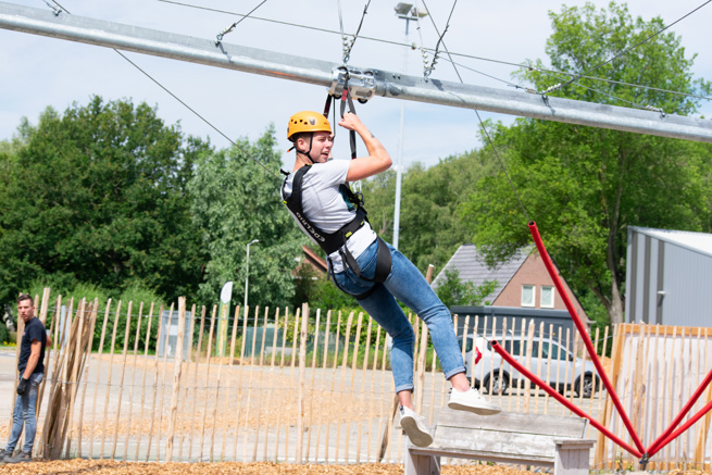 The Rollercoaster Zipline combines the speed of a zipline (also known as a zip line) with the thrill of a roller coaster! By means of a safe fuse, you are attached to this ''zip line'' and you can take off. Perfect for vrijgezellenfeesten and bedrijfsuitjes. But for the young adventurers among us, the Rollercoaster Zipline is also great fun for kinderfeestje and schoolreisje! You can take on the adventure from the age of 8 and 1.30 metres.