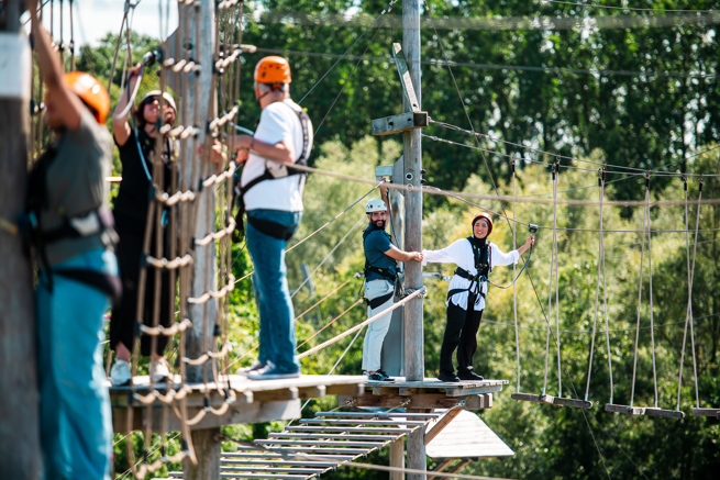 Do you want to organise an active bachelor party? Then you have come to the right place. Our adventures offer plenty of fun for young and old. For example, you can zip down the ziplinerollercoaster: a unique zipline with different heights and curves. Or jump from as high as 20 metres with the freefall quick jump 20 metres. Keep your adrenaline levels up here! Prefer something quieter? Then our indoor and outdoor climbing courses are the answer . These adventures are just some of the many possibilities within our adventures. Click the button below to find even more spectacular activities that are perfect for an active bachelor party.