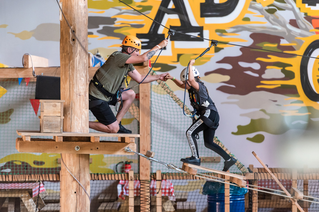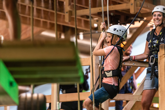 Klimmen is intensief. En Adventure City is groot. Met 2000m2 indoor en 5000m2 outdoor zip- en klimplezier, is het verleidelijk om het hele park in een keer te willen proberen. Maar neem de tijd en gun jezelf een pauze, zeker als je merkt dat je lichaam vermoeid raakt en/of je minder grip hebt.