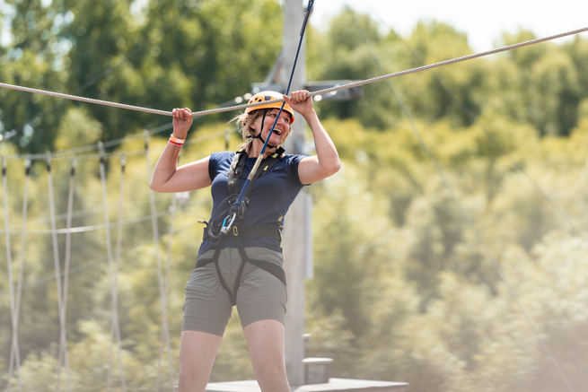 Opnieuw de hoogte in! Nu is iedereen warmgedraaid, dus het gaat een tandje sneller, hoger en spannender. Misschien een parcours dat nét iets uitdagender is, of opnieuw die ene zipline waar de vrijgezel bij het eerste rondje gilde alsof het leven ervan afhing. De lachbuien en teamspirit maken het alleen maar leuker.